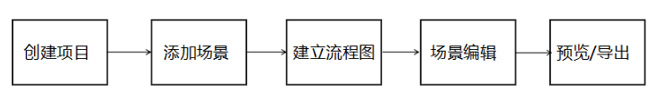(1)编辑器Creator的整体流程框架比较明确,是用户完成一个交互式全景内容的编辑过程主要是经过:创建项目、添加资源、建立流程图、场景编辑、预览/导出。